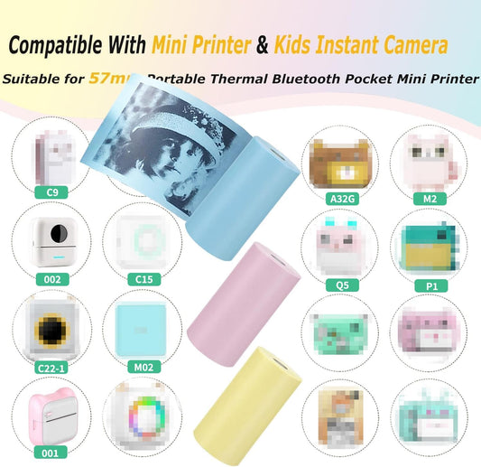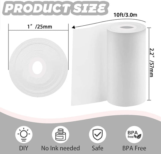 10 Rolls Mini Thermal Printer Sticker Paper, Mini Printer Sticker Paper 57 X 25mm, Mini Pocket Printer Sticker Paper for Most Kids Instant Camera, Kids Instant Camera Refill Mini Printer Paper
